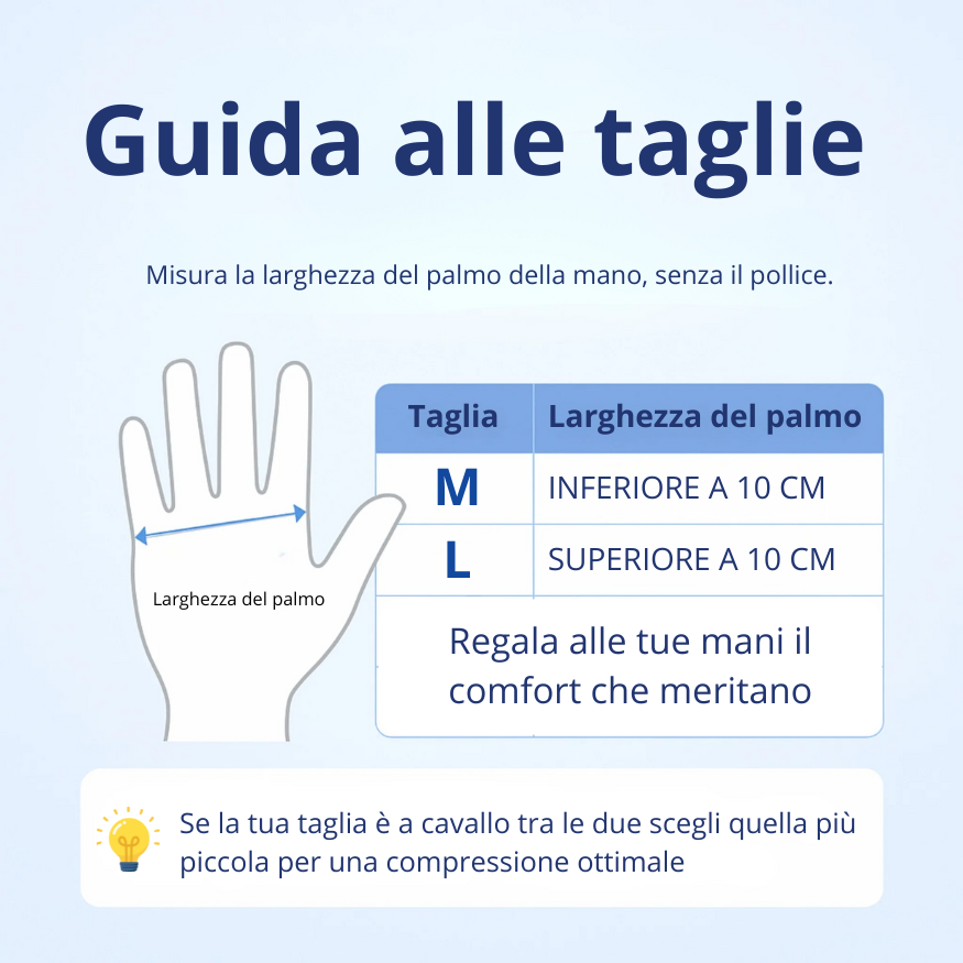 I nostri guanti a compressione esercitano una pressione delicata e mirata che aiuta a riattivare la circolazione, alleviare il dolore e ridurre le sensazioni di gonfiore.