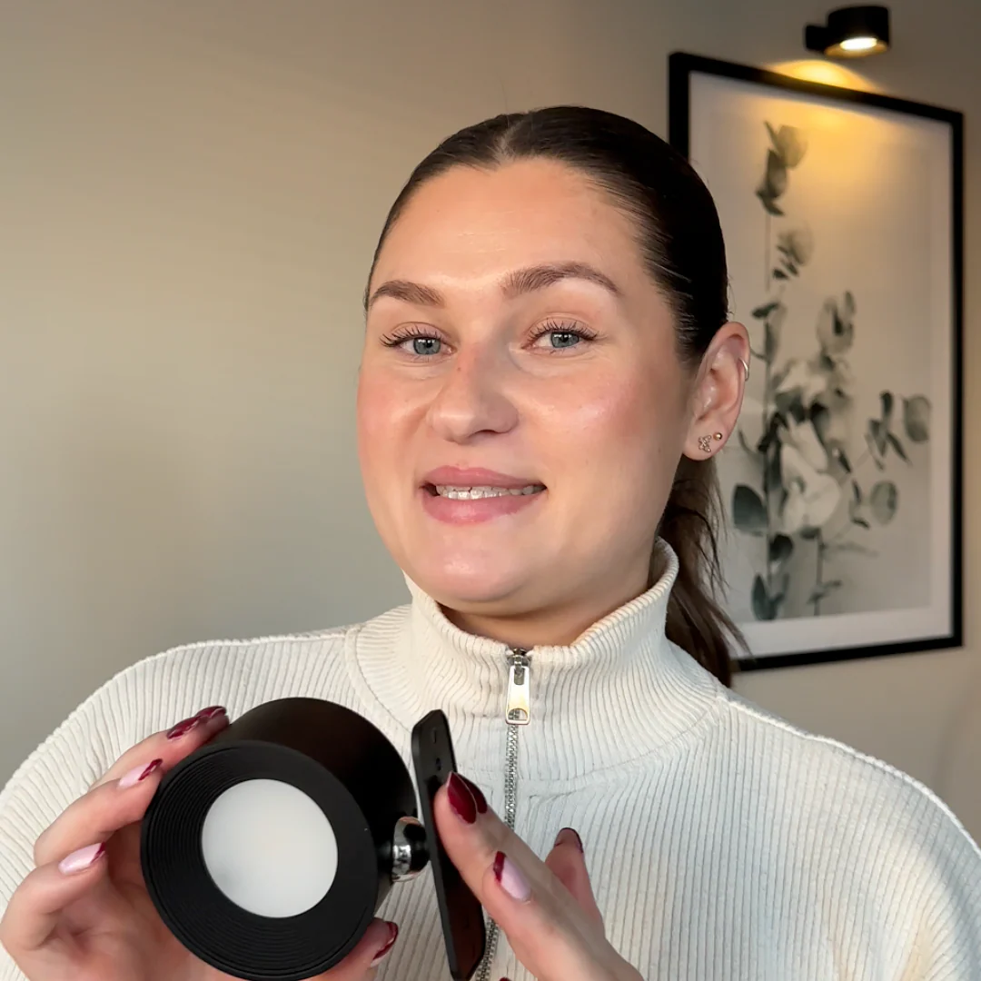 Fatto! La testa della lampada ruota a 360 gradi per regolare la luce in base alle tue esigenze. Per ricaricarla, è sufficiente rimuoverla dal supporto e collegarla al caricatore USB-C incluso. Questa lampada è ideale per gli ambienti senza presa a muro, dove non vuoi forare né lasciare cavi penzolanti.
